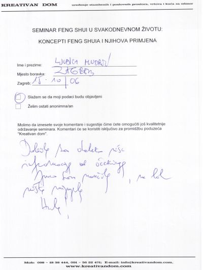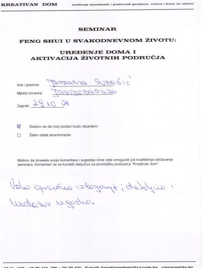 Dobila sam daleko više informacija od očekivanog. Puno sam naučila, ne bi li nešto mijenjala. Hvala.